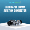 GX30 6-pin 30mm circular aviation connector with threaded screw coupling for secure connections. Supports 250V-600V AC/DC, 20A-30A, featuring nickel-plated brass housing and copper alloy pins for high conductivity. IP65/IP67 waterproof rating, soldered wire terminals, and panel mount design make it ideal for crane systems, industrial power, and automation applications