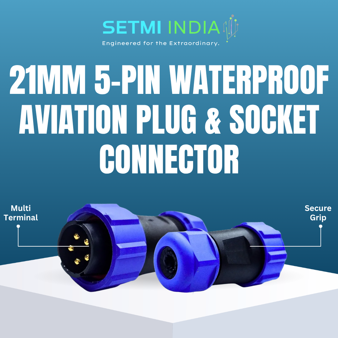 Ensure robust performance and maximum reliability with our premium 21mm “ 5 Pin Waterproof Circular Male Connector | IP67 |. Part of the specialized 21mm Waterproof Connectors range at Setmi India, this component is meticulously engineered for critical applications in Industrial & Marine Electronics.