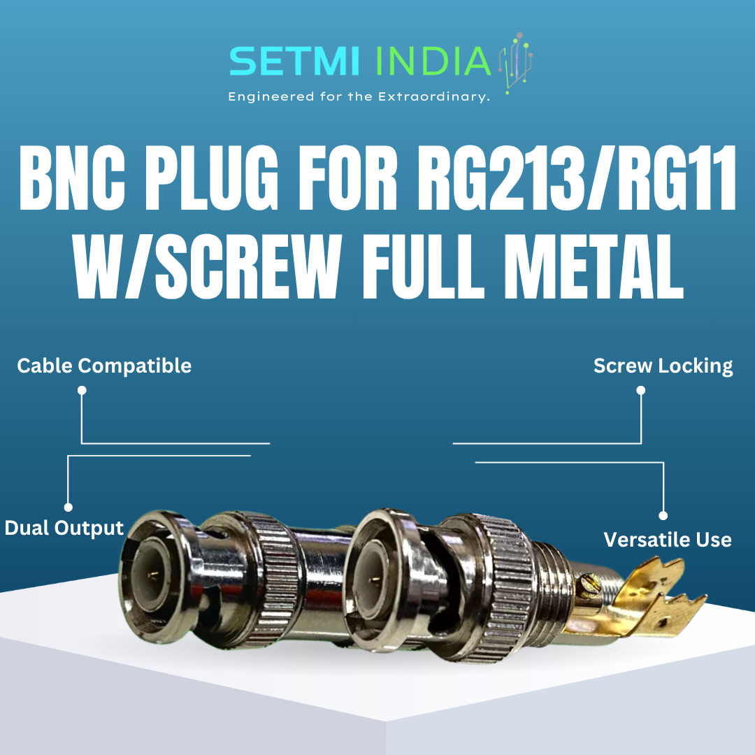Ensure robust performance and maximum reliability with our premium Bnc Plug For Rg213/rg11 W/screw Full Metal. Part of the specialized BNC Connectors range at Setmi India, this component is meticulously engineered for critical applications in RF, CCTV & Video Broadcasting.