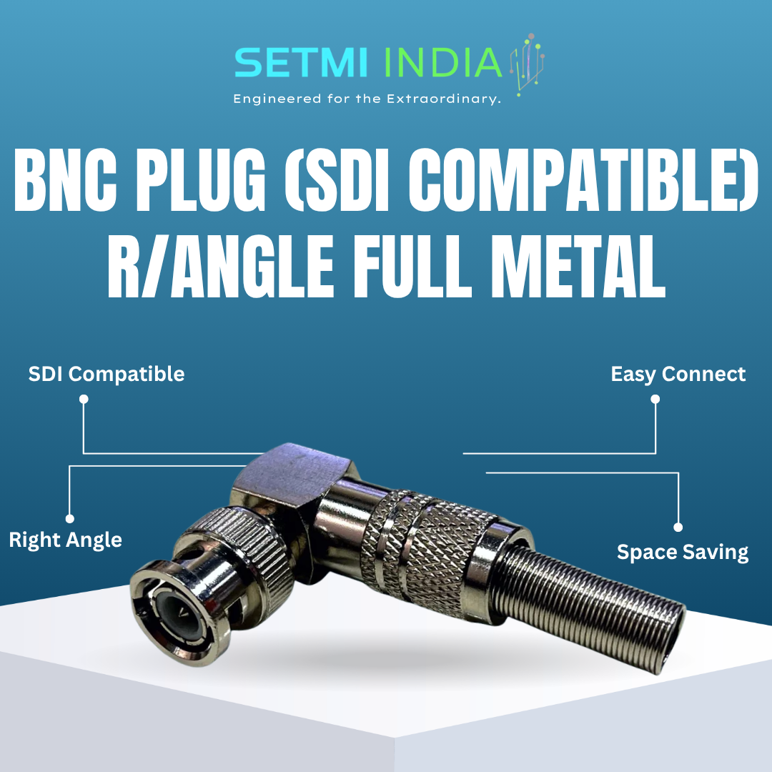 Ensure robust performance and maximum reliability with our premium Bnc Plug (sdi Compatible) R Angle Full Metal. Part of the specialized BNC Connectors range at Setmi India, this component is meticulously engineered for critical applications in RF, CCTV & Video Broadcasting.