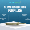 The SETMI INDIA Desoldering Pump LL100 is a manual solder sucker with a spring-loaded suction, perfect for solder removal on PCB boards. Made with a Teflon (PTFE) tip and heat-resistant plastic body, it’s durable, reusable, and easy to clean. Ideal for technicians looking for a reliable de soldering pump, solder remover, or desoldering sucker.