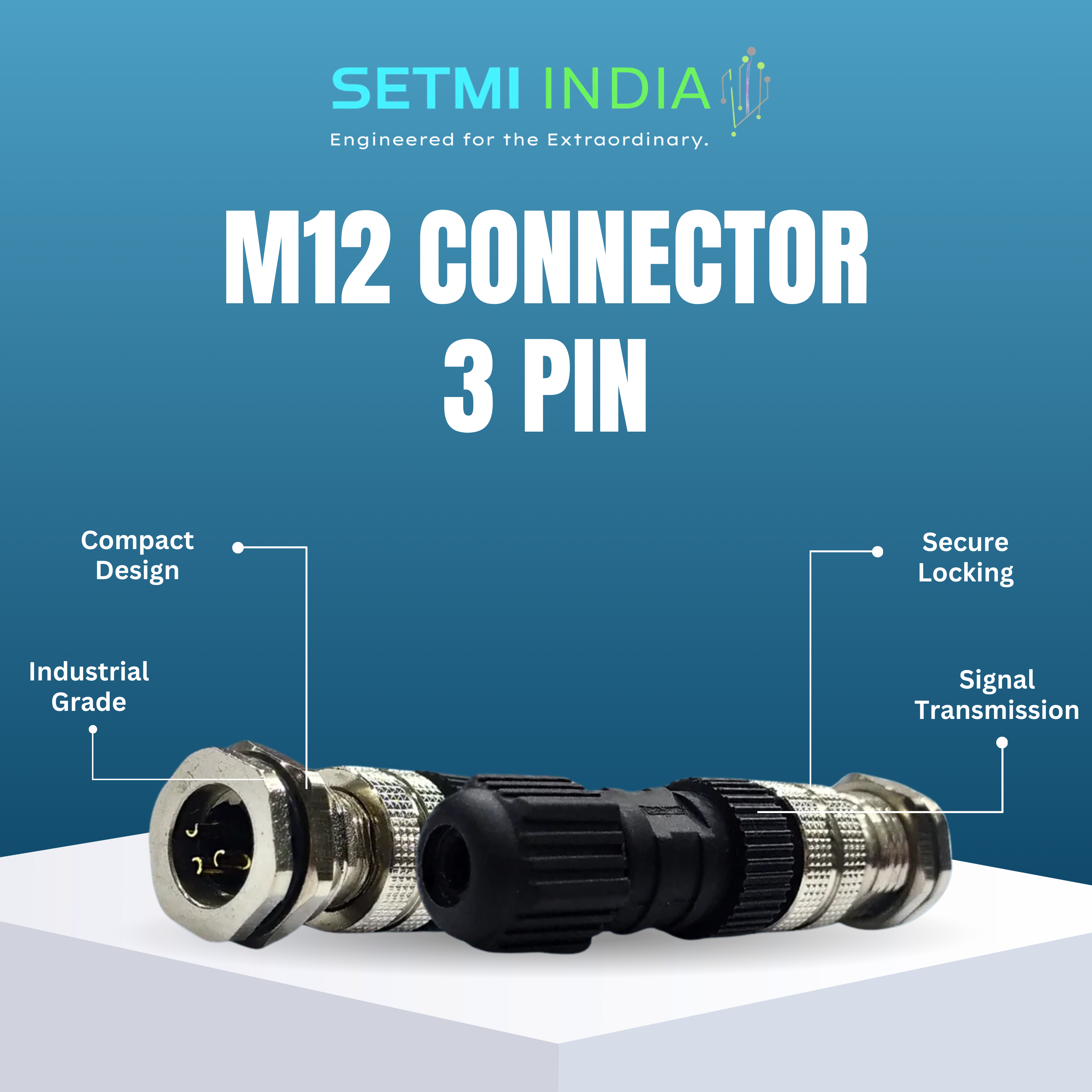 M12 Connectors Pin, including the Pins Connector and M12 Plug, engineered for high-performance and secure connections. These connectors are widely used in industrial automation, sensor technology, and electronic applications due to their robust design and reliable connectivity. Whether you need a 3-pin connector for power transmission or an M12 Plug for data communication, Setmi India’s connectors guarantee dependable performance, even in challenging environments.