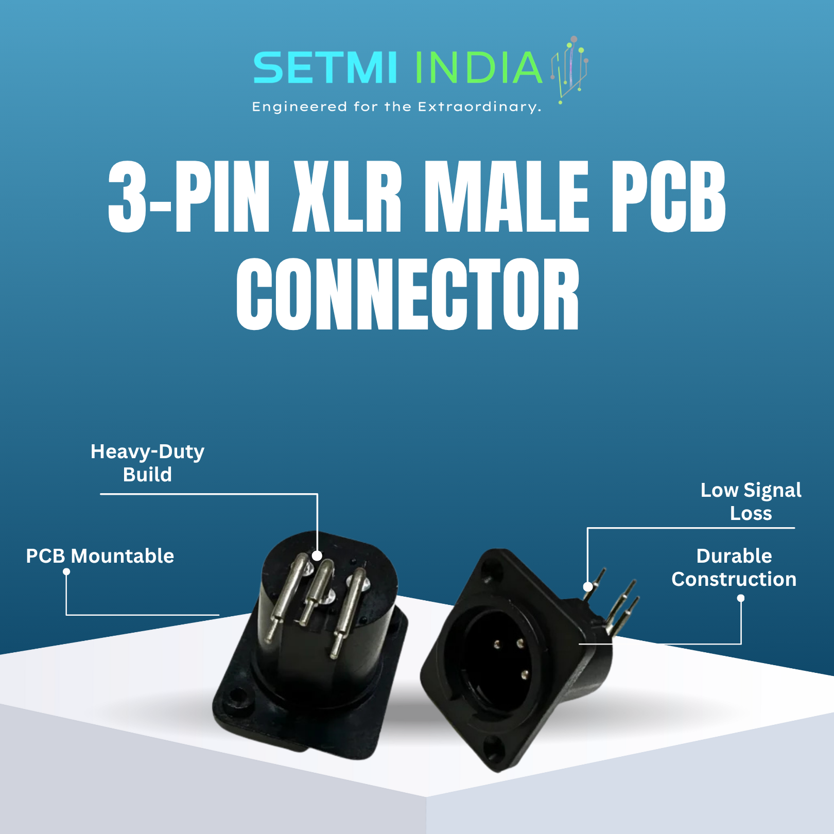 3-Pin XLR Male PCB Connector – Right Angle, Long Thin Pins | Setmi India